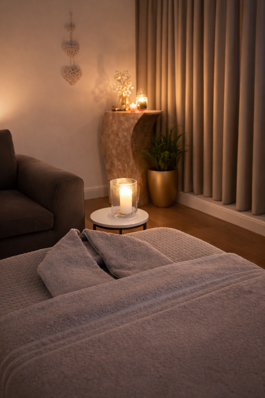 There is something uniquely comforting about being able to fully let go without traffic, time pressure or unfamiliar surroundings. Your space is gently transformed into a private sanctuary.
